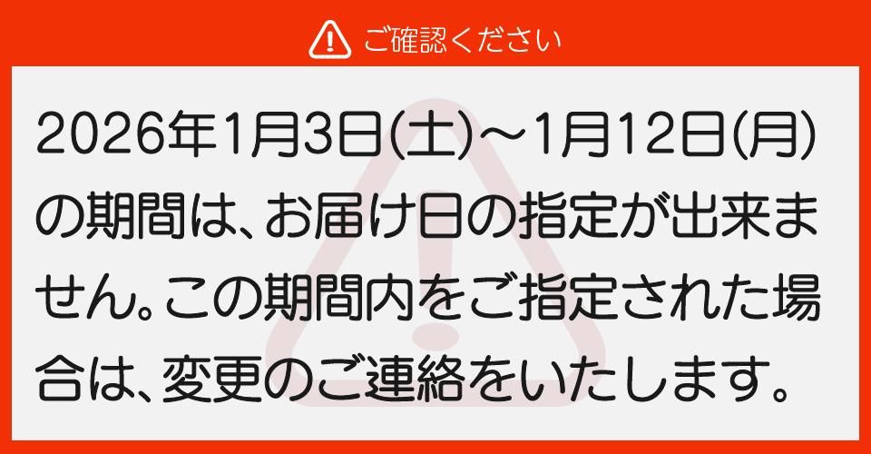 2026年1月3日(土)~1月12日(月)の期間は、お届け日の指定が出来ません。この期間以外をご希望の場合は、備考欄にご記入ください